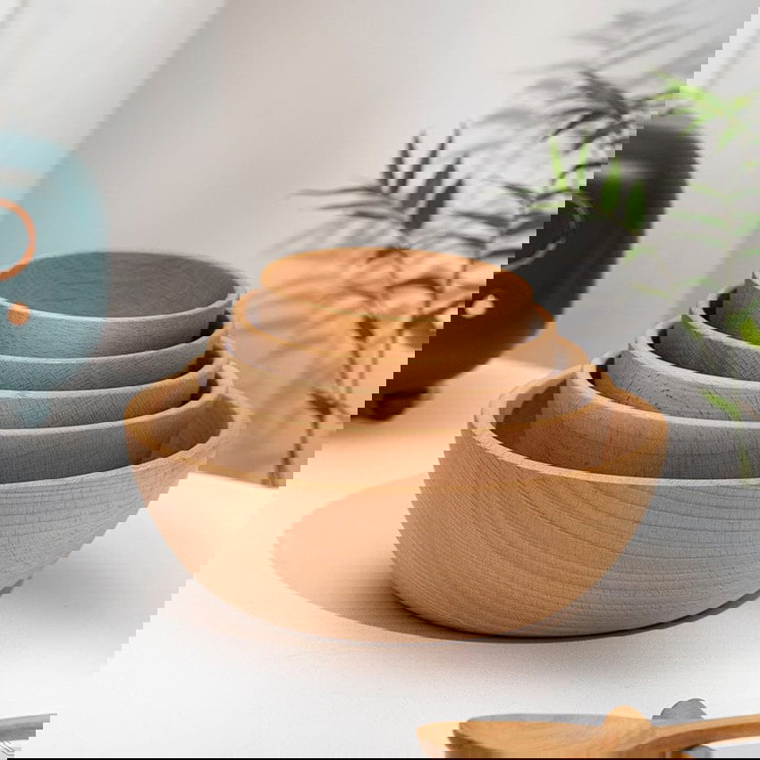 favorite kitchen tool. The rich finish of our handmade Beech Wood Salad Bowl mellows into a natural glow over time. The assortment of 5 bowl size options makes them perfect for any occasion, from large gatherings to romantic dinners for two. These bowls are designed to last and make serving an absolute pleasure!