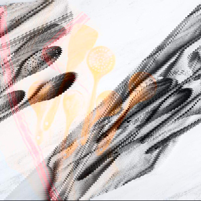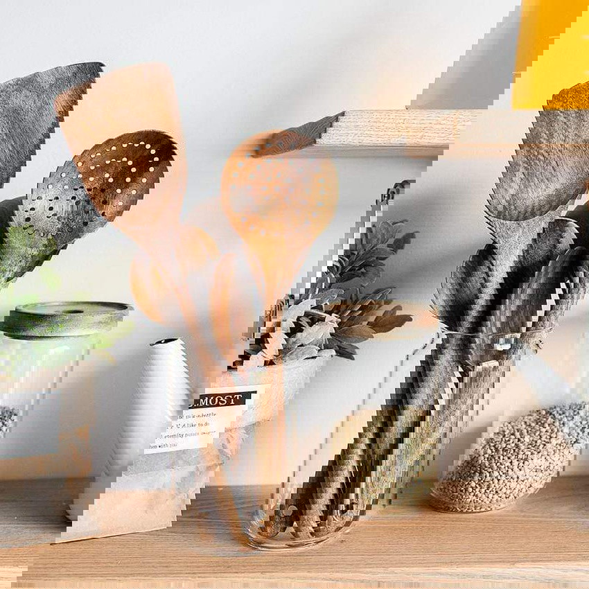 Declutter and bring serenity back to your kitchen! Forget all the clutter and replace your old silicone or mismatched utensils with good-quality wooden utensils that will last for years to come!