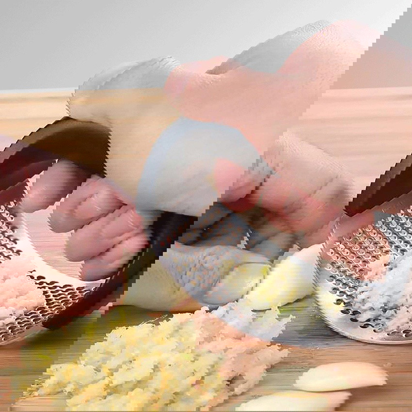 Say goodbye to the garlic smell on your hands and speed up your prep time! Our garlic press easily crushes garlic in no time and is super easy to use and clean.