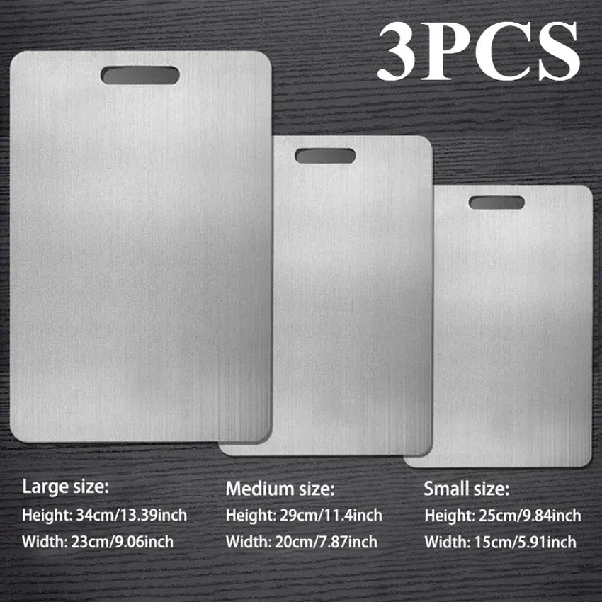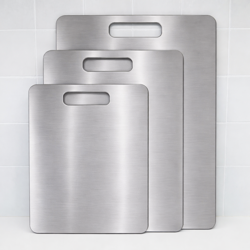 Meet the Titanium Cutting Board Set — a cleaner, smarter alternative to traditional plastic cutting boards. Designed for modern kitchens, these sleek titanium boards help you prep food on a durable, non-porous surface without the worry of constantly slicing into plastic day after day.